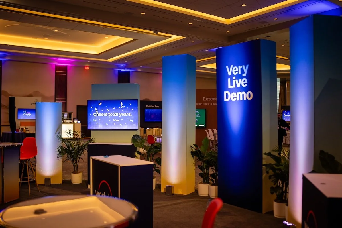 This year’s prioritization of onsite digital signage (over printed signage), allowed us to transform the space, while maximizing content opportunities, creating huge impactful brand takeover moments, and supporting Workday’s sustainability efforts.
