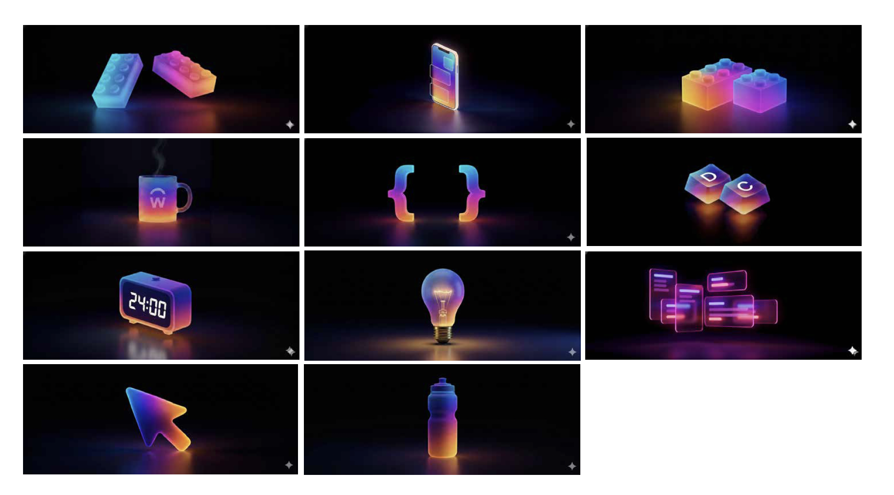 To maintain brand alignment, I stayed true to the established 'spot illustration' format and the perspective of objects. However, I leaned into a new color palette, lighting, and environment to set them apart. Unlike typical illustrations designed for light backgrounds, these were built for 'dark mode.' This environment allowed me to emphasize a vibrant 'glow' effect and strong light reflections—creating a library tailored specifically to the world of the developers they were designed for.