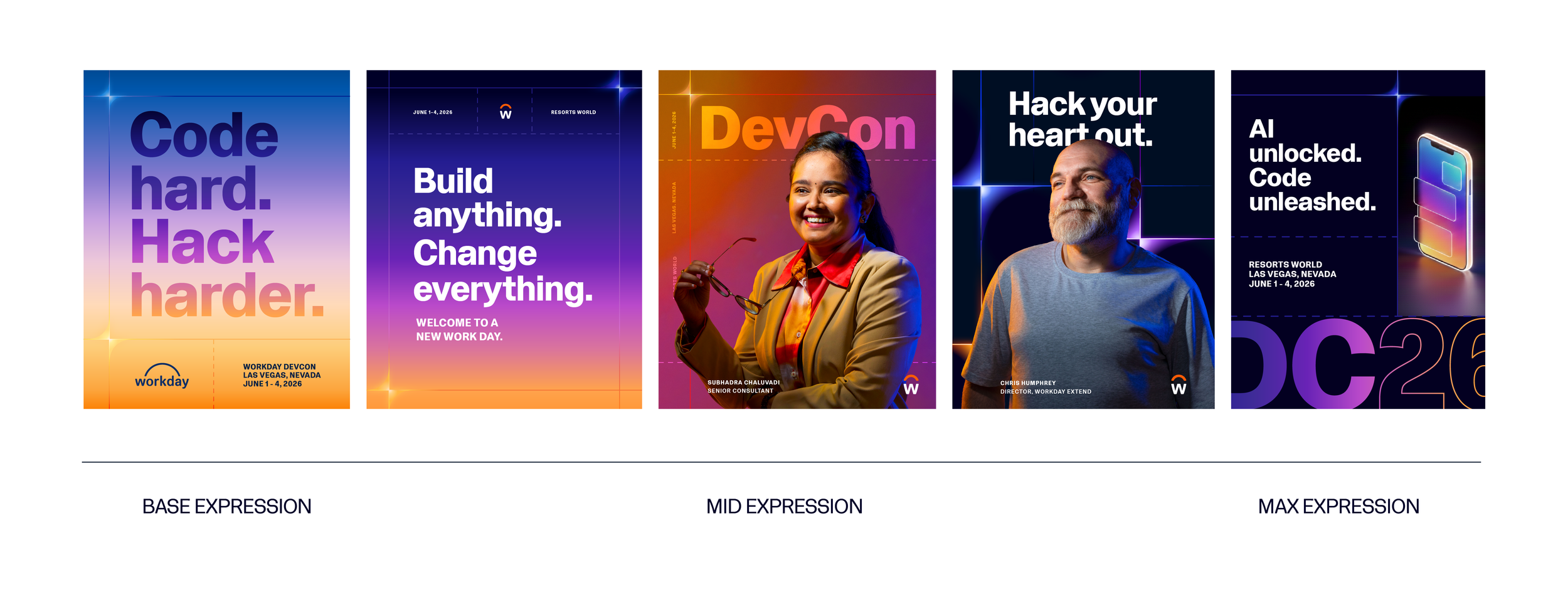 I set out to build a brand where developers could truly see themselves. Using photography from our 2025 DevCon photoshoot, we made that a literal reality. My goal was to communicate that the Workday brand wouldn’t exist without its contributors. I wanted developers to see their own faces on our website, social media, keynotes, and event signage, fostering a sense of pride in being part of this community—and inspiring other attendees to wonder, 'How do I become one of them?'